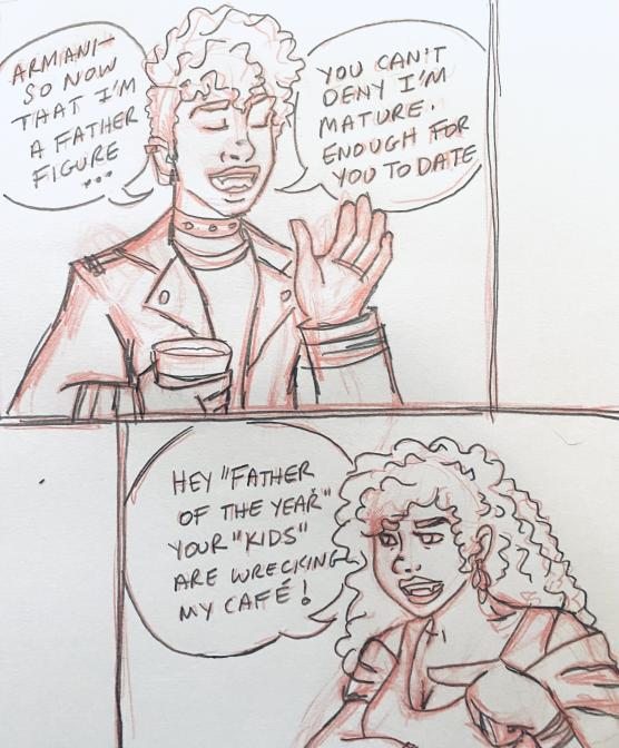 Backstory: Armani was turned by Clarissa in 1969 and lived with her until 1975 where her sire’s infidelity became clear. A fight between the two escalated and Armani injured Clarissa before fleeing into the night. She then makes her way to San Giles to make a fresh start. Can brew some damn good coffee and tea.